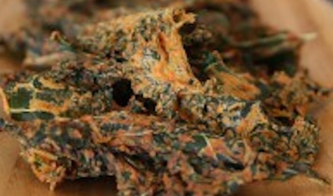 Dr. Greger: Kale chips, of course! I make mine ahead of time and just take them with me wherever I go. Cheap, easy and then you get to cross off a serving of greens from your Daily Dozen list!